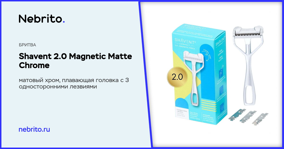 Изготовлена методом литья цинка под давлением. Сверху бритва покрыта тонким слоем хрома с матовым финишем для защиты от коррозии. Вес станка небольшой, это облегчает контроль за процессом бритья, щетина сбривается без нажима. Это компактная версия полноразмерного Shavent 2.0. Длина Compact — всего 12 см, поэтому он легко помещается в дорожной косметичке.